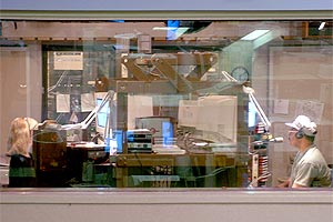 ![]() KFWB B Control ("Master Control") This was the heart of the KFWB Programming product. No one sAT at this console (Board Ops were eliminated many years ago). The Anchors (Tracie Savage seen through glass) operateD the console via remote switches in the Anchor Booth. |